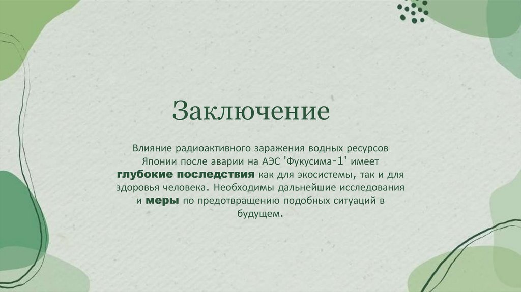 ЗаключениеВлияние радиоактивного заражения водных ресурсов