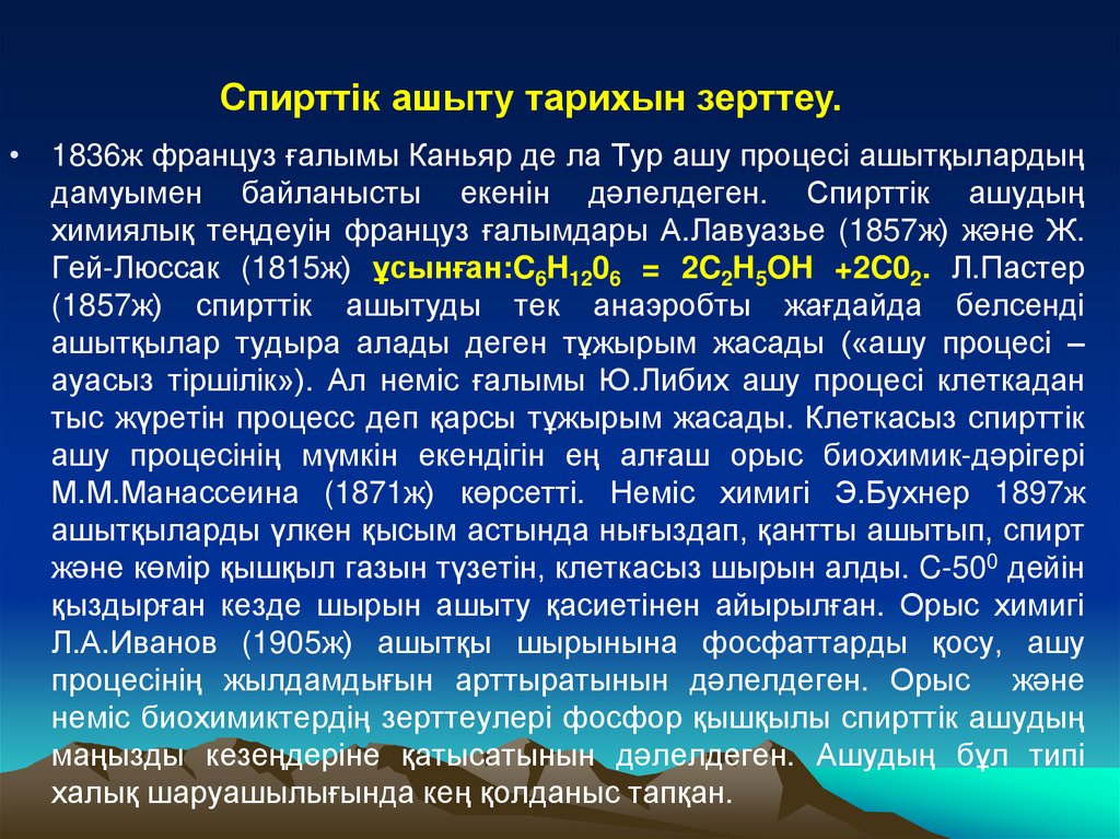 дамуымен байланысты екенін дәлелдеген. Спирттік ашудың