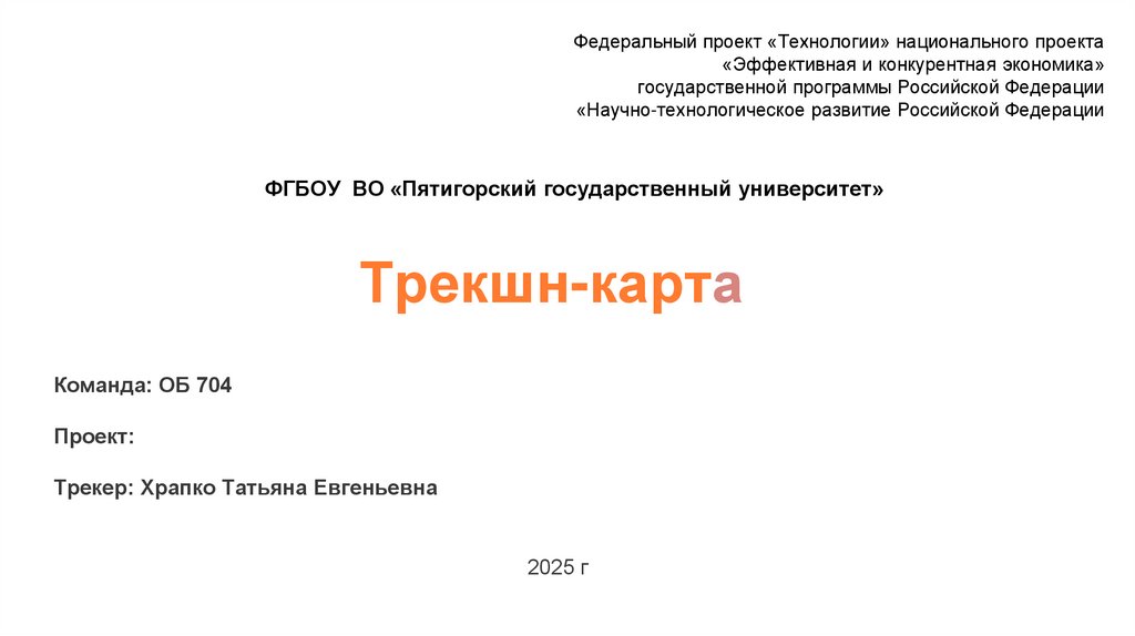 Федеральный проект «Технологии» национального проекта«Эффективная и конкурентная экономика»