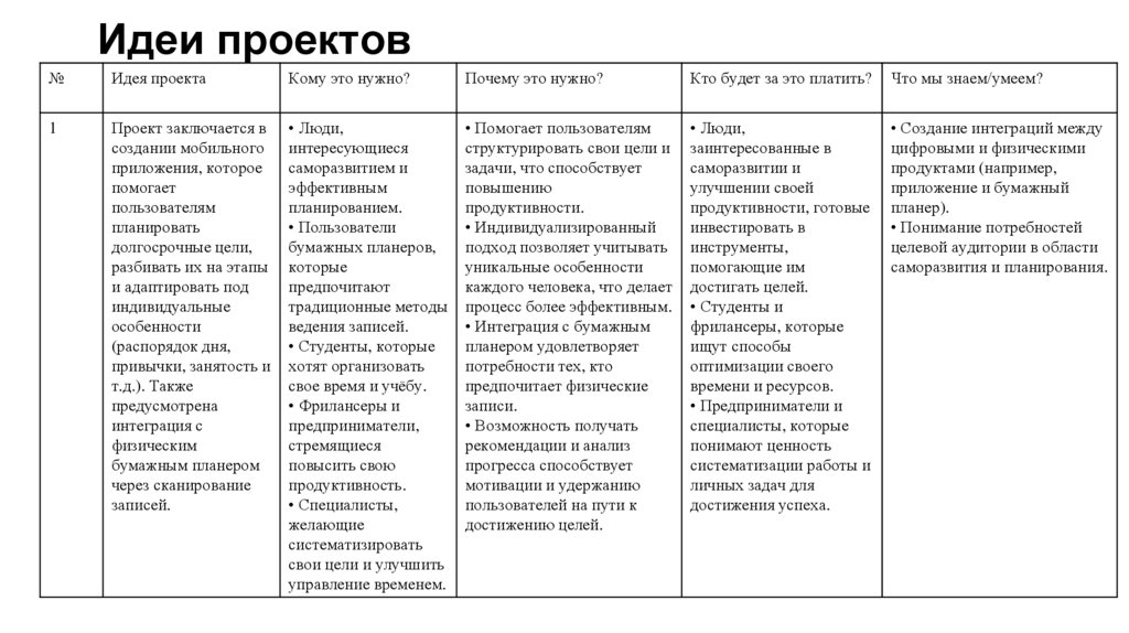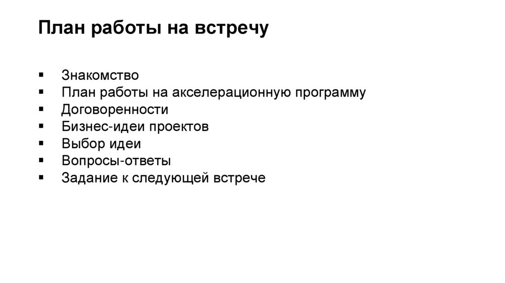 План работы на программу1-я встреча «Формирование проектной идеи»