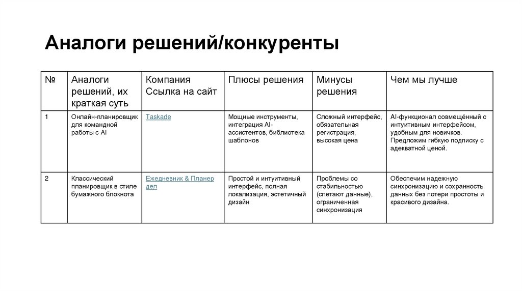 2. Провести более детальный анализ конкурентов (задание к втрече 1)