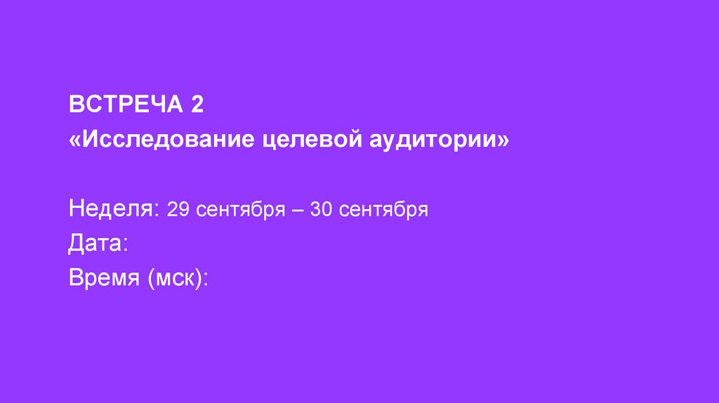 2-я встреча «Исследование целевой аудитории» (29-30 сентября)