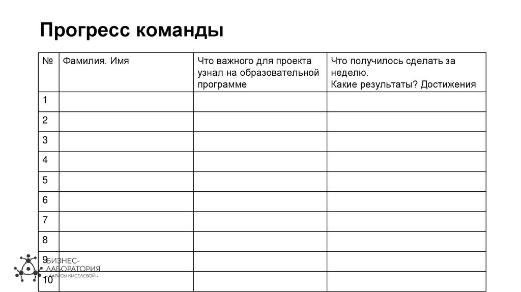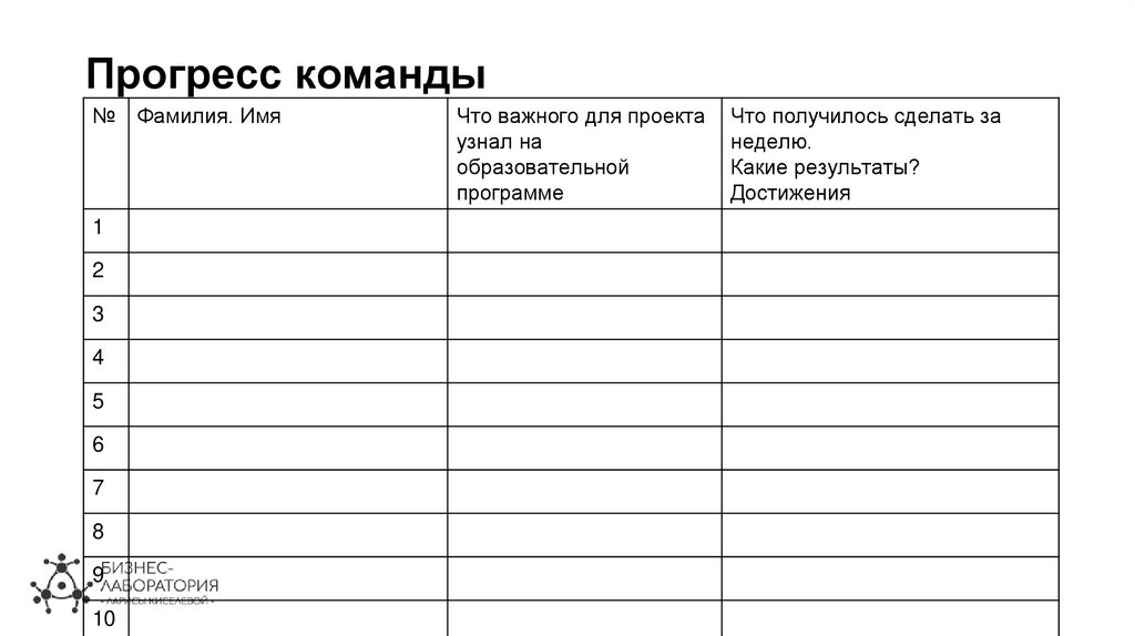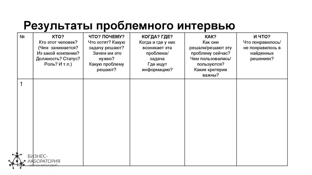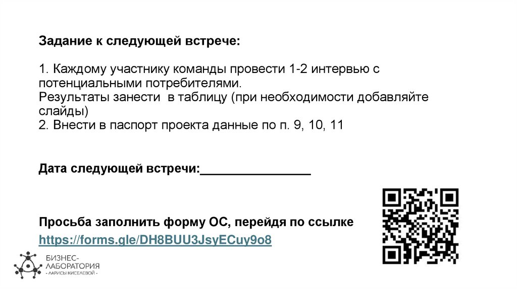 Задание к следующей встрече:1. Каждому участнику команды провести 1-2 интервью с