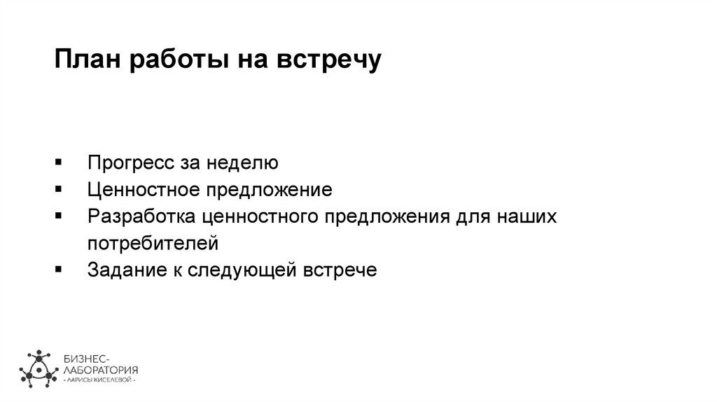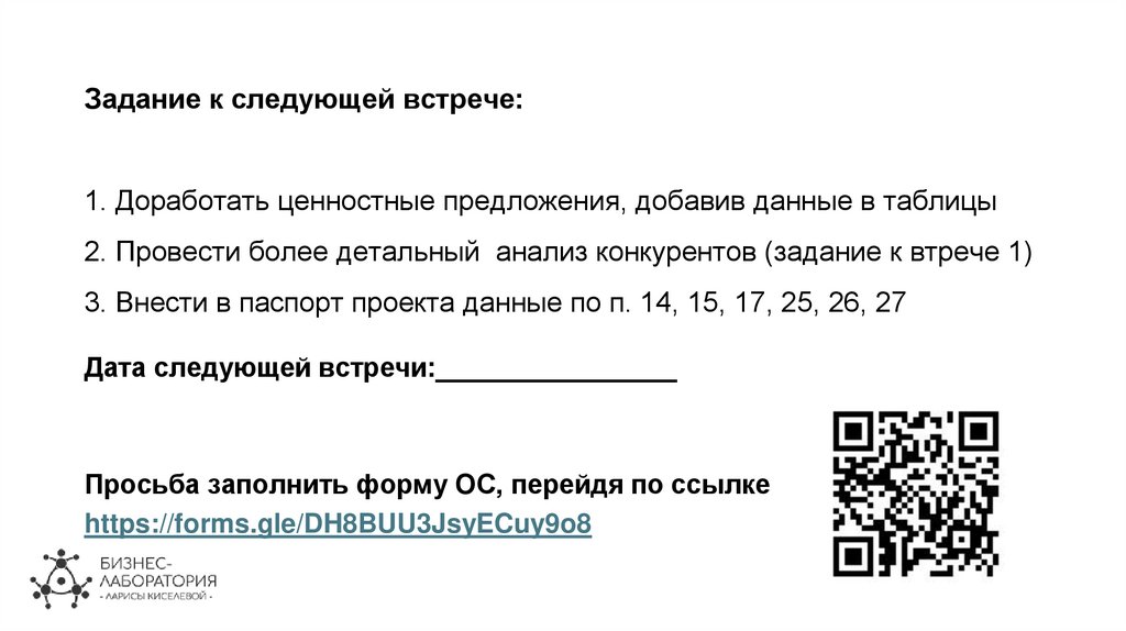 Задание к следующей встрече:1. Доработать ценностные предложения, добавив данные в таблицы