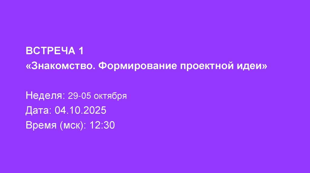 ВСТРЕЧА 1«Знакомство. Формирование проектной идеи»