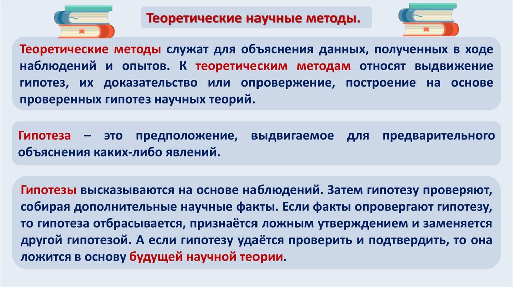 Теоретические методы – это объяснение результатов, полученных в ходе