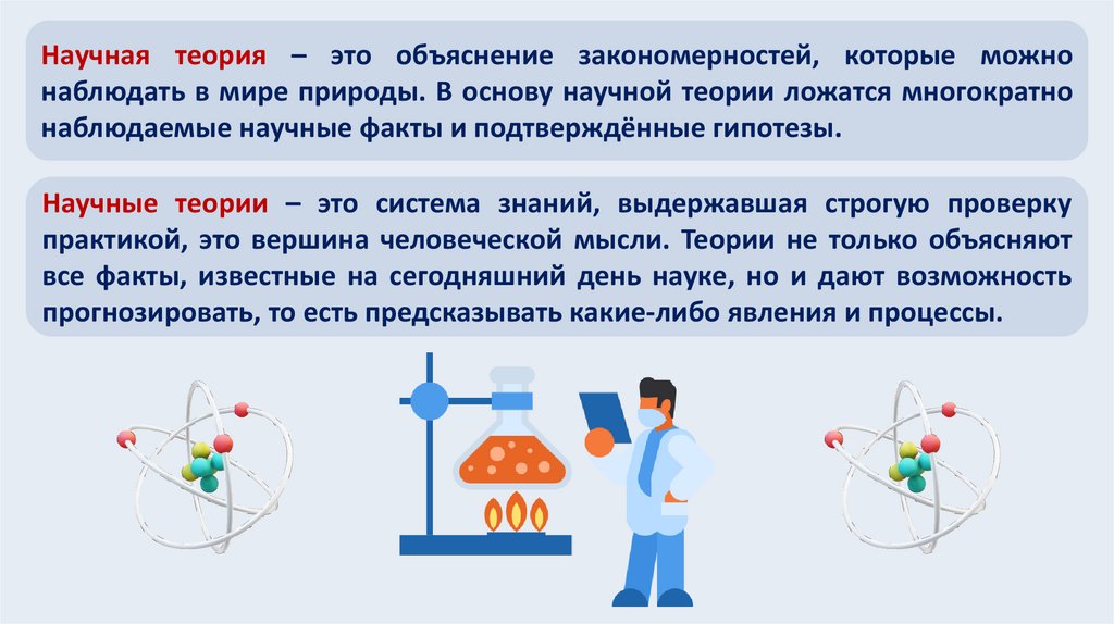 Научная теория – это объяснение закономерностей, которые можнонаблюдать в мире природы. В основу научной теории ложатся многократно