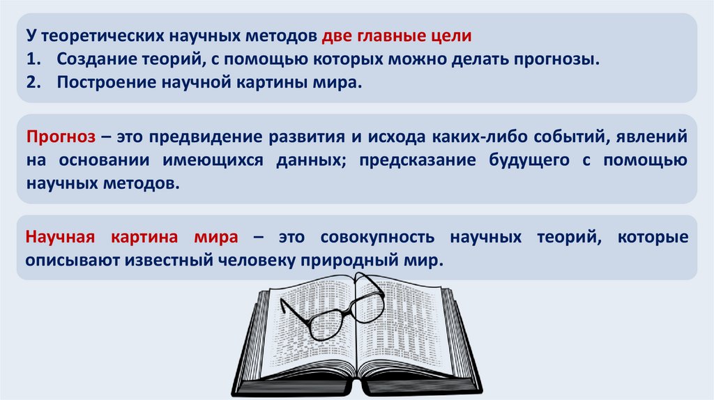 У теоретических научных методов две главные цели1. Создание теорий, с помощью которых можно делать прогнозы.