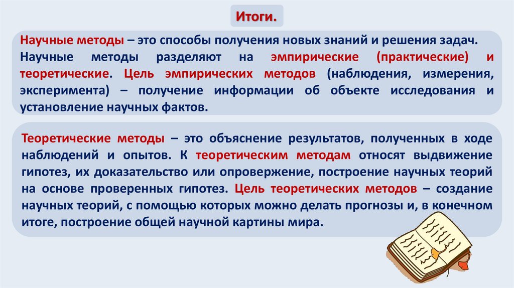 Итоги.Научные методы – это способы получения новых знаний и решения задач.