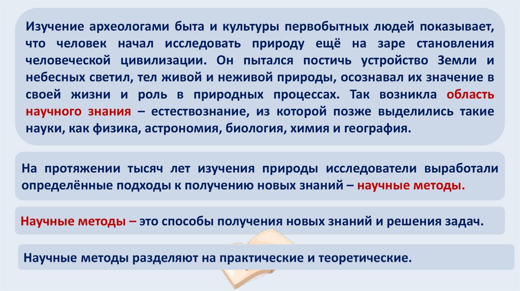 Изучение археологами быта и культуры первобытных людей показывает,что человек начал исследовать природу ещё на заре становления