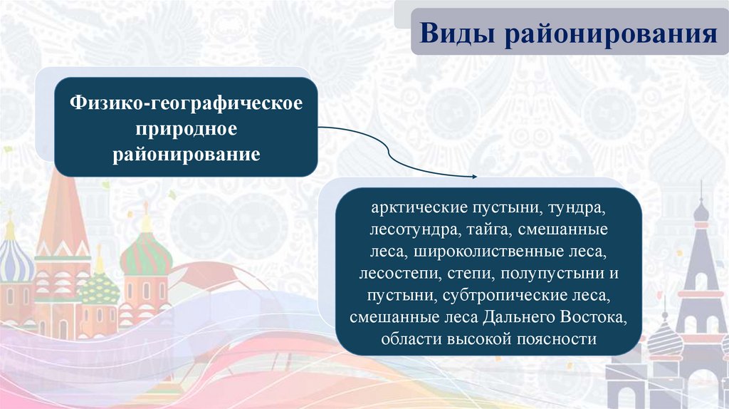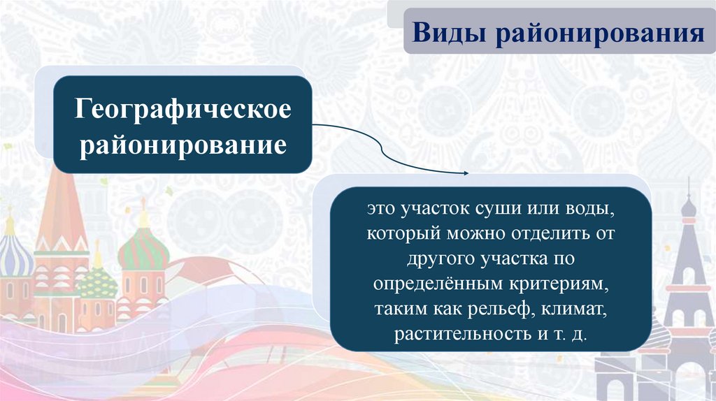 Районирование — деление территории на части районы, которые отличаются друг от другаприродными, историческими, экономическими