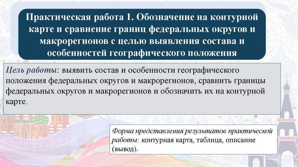 Практическая работа 1. Обозначение на контурнойкарте и сравнение границ федеральных округов и