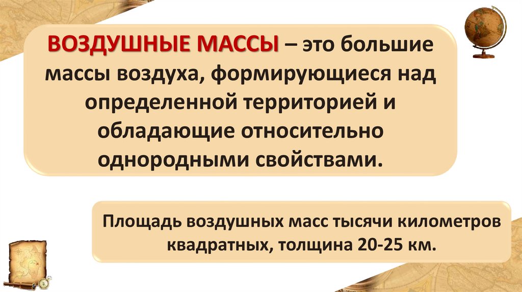 ВОЗДУШНЫЕ МАССЫ – это большиемассы воздуха, формирующиеся над