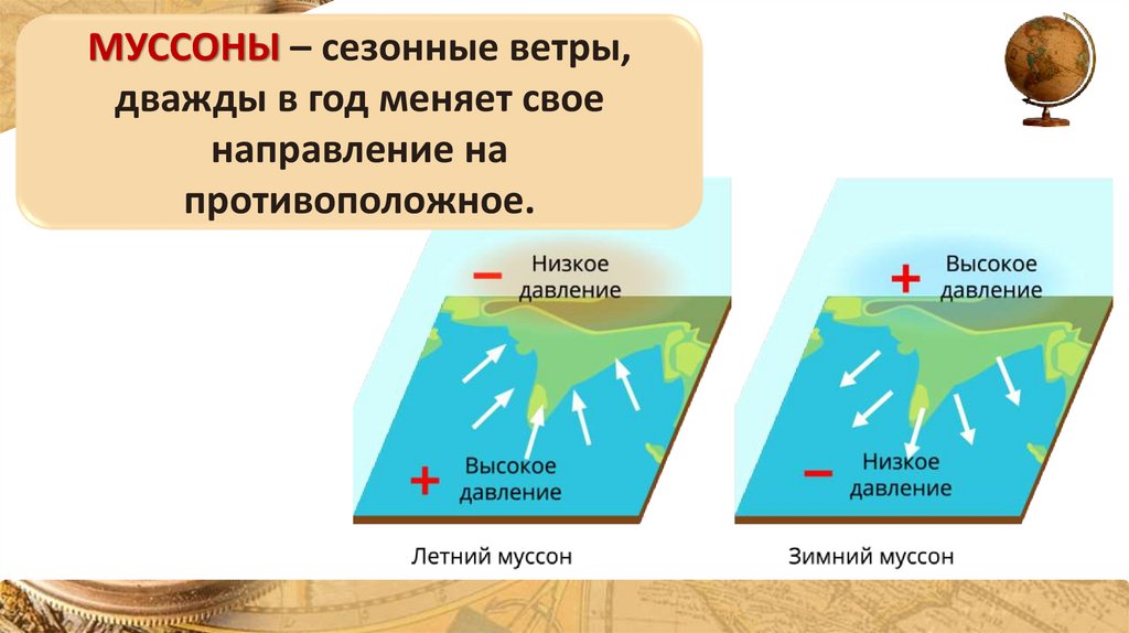 МУССОНЫ – сезонные ветры,дважды в год меняет свое