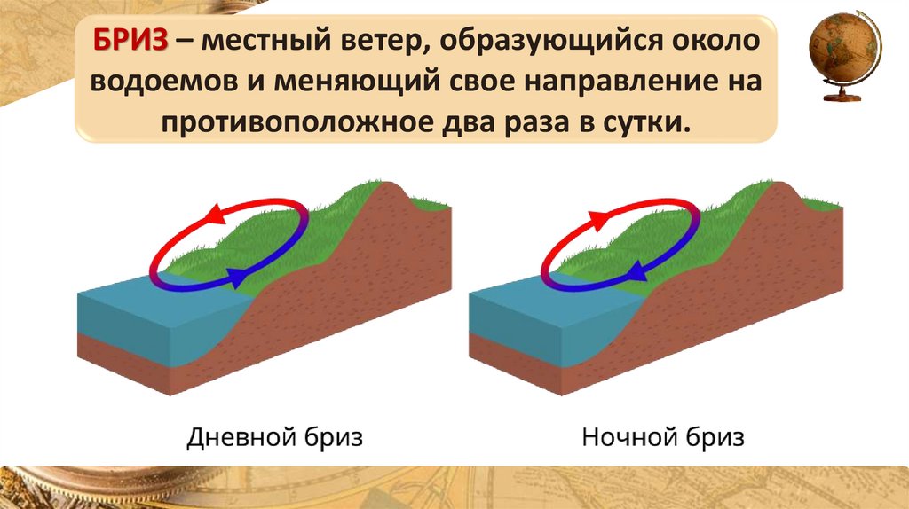 БРИЗ – местный ветер, образующийся околоводоемов и меняющий свое направление на