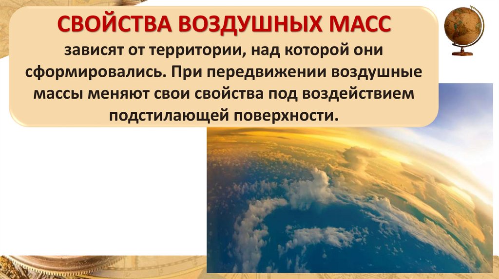 СВОЙСТВА ВОЗДУШНЫХ МАССзависят от территории, над которой они