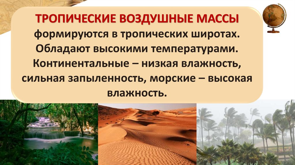 ТРОПИЧЕСКИЕ ВОЗДУШНЫЕ МАССЫформируются в тропических широтах.