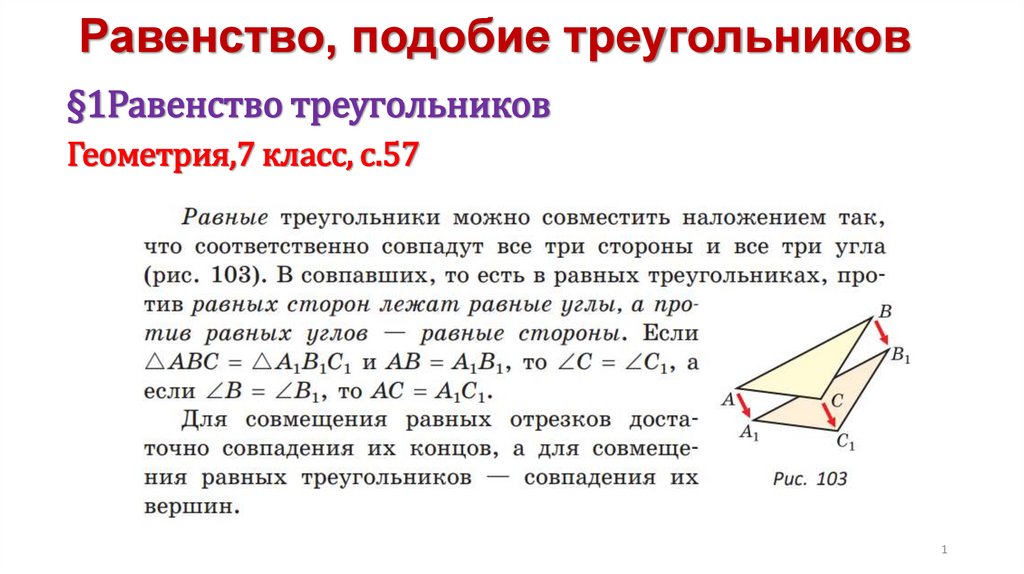 §1Равенство треугольниковГеометрия,7 класс, с.57