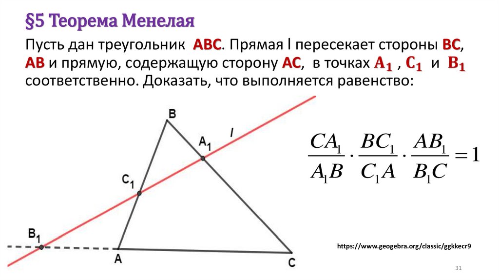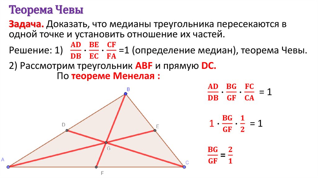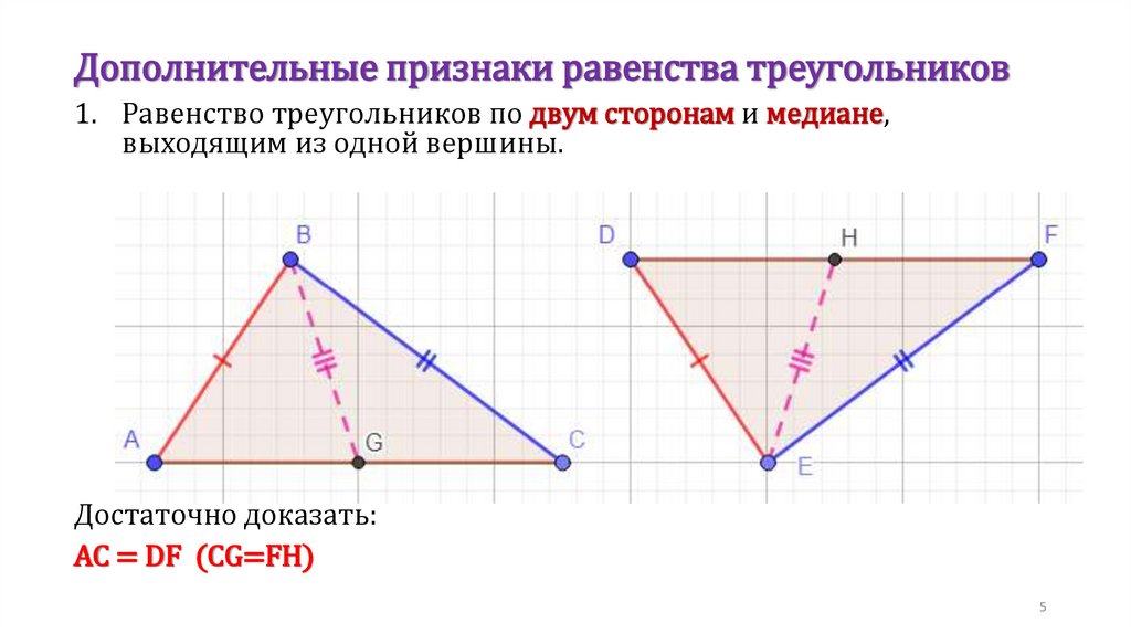 Дополнительные признаки равенства треугольников1. Равенство треугольников по двум сторонам и медиане,