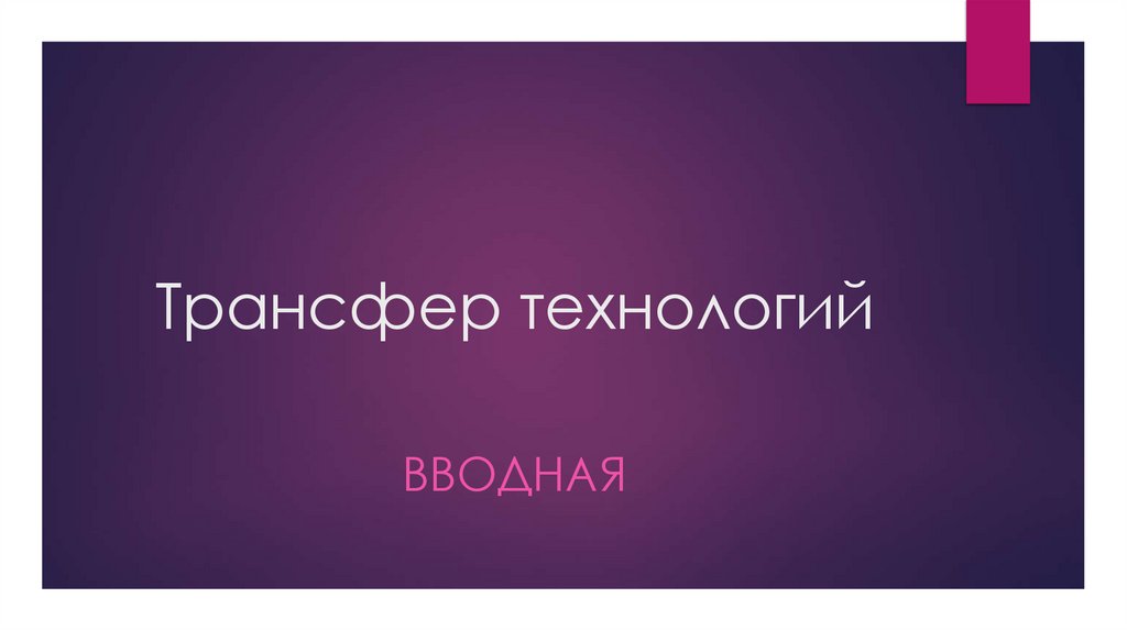 Tрансфер технологий (technology transfer) — успешное применение и/илиадаптация технологии, знаний или результатов научных исследований, полученных в