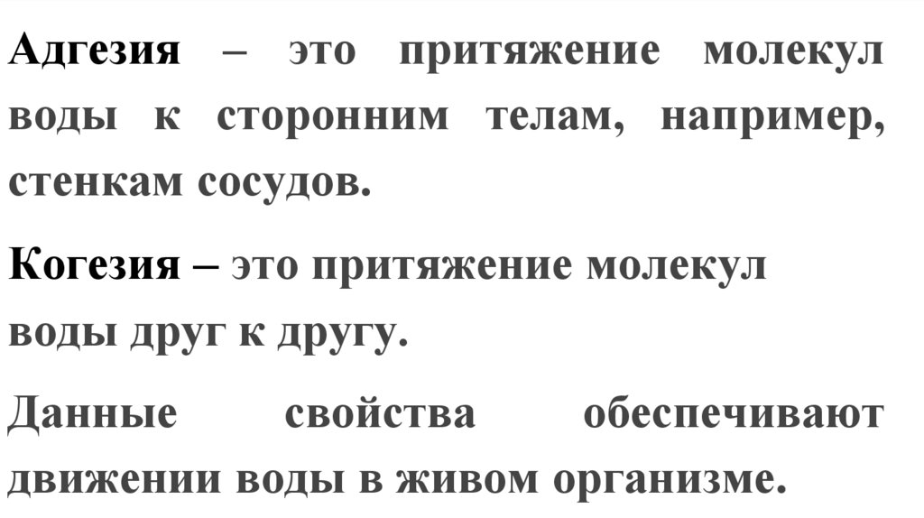 Адгезия – это притяжение молекулводы к сторонним телам, например,