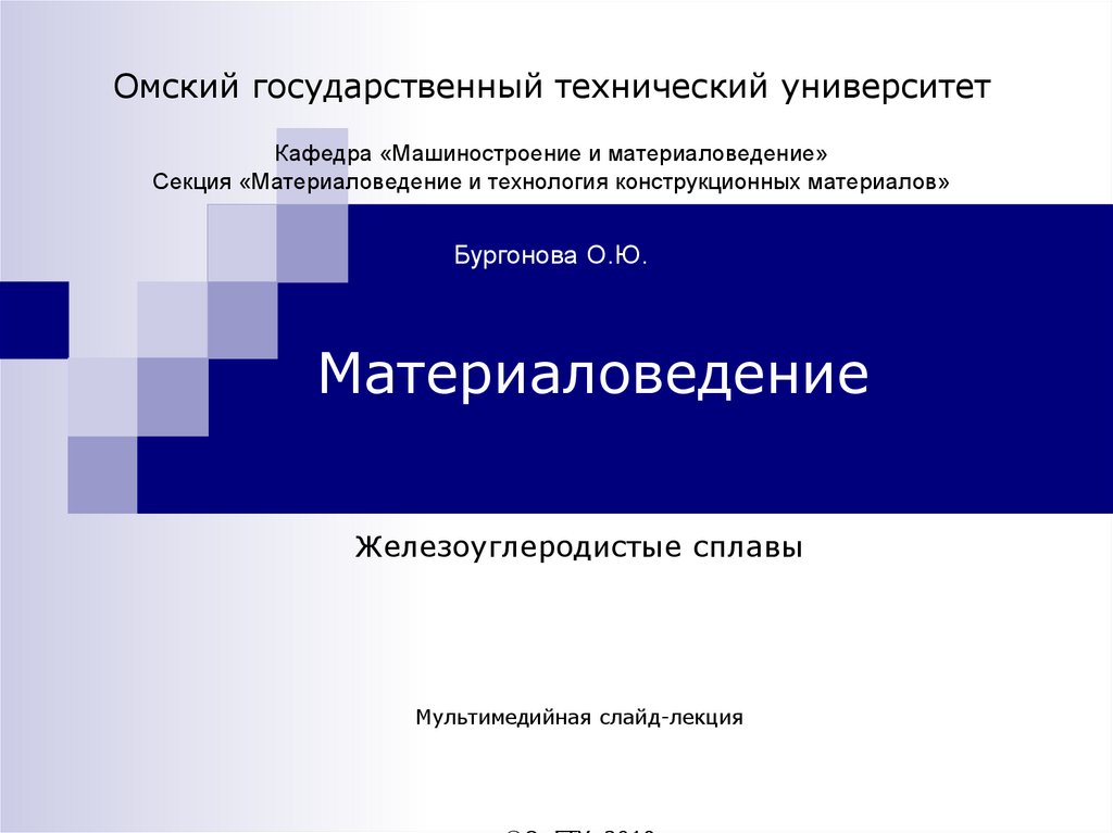 Омский государственный технический университетКафедра «Машиностроение и материаловедение»