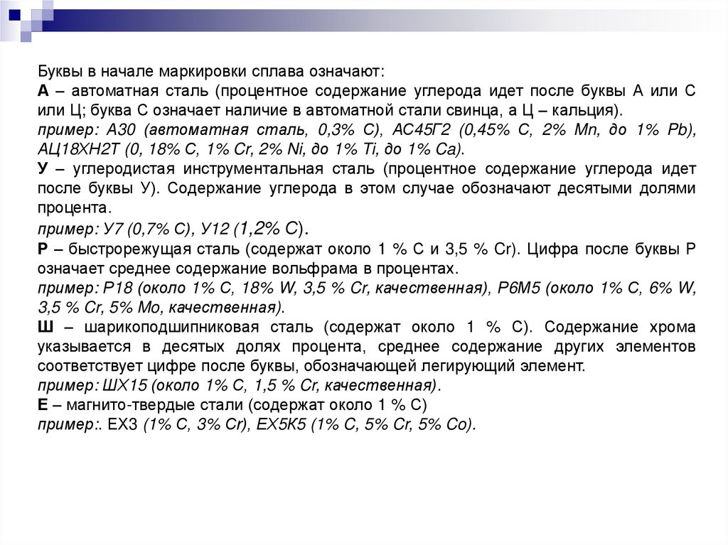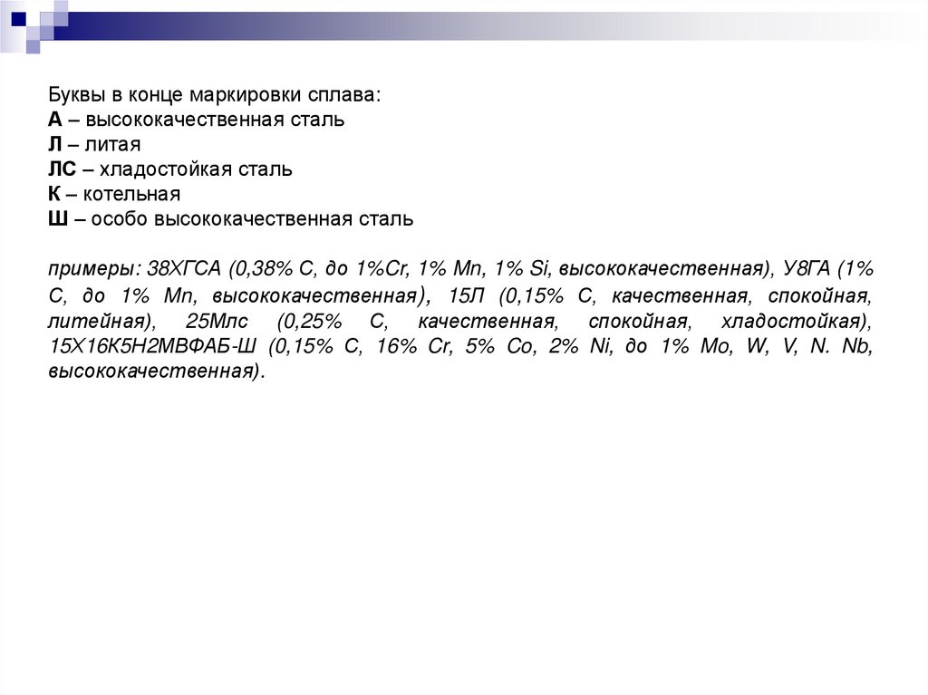Специальные чугуны маркируются следующим образом: