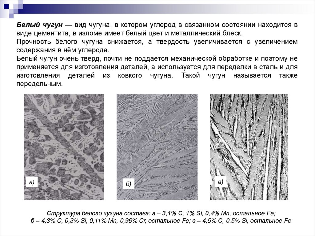 и заэвтектического (в) чугуна