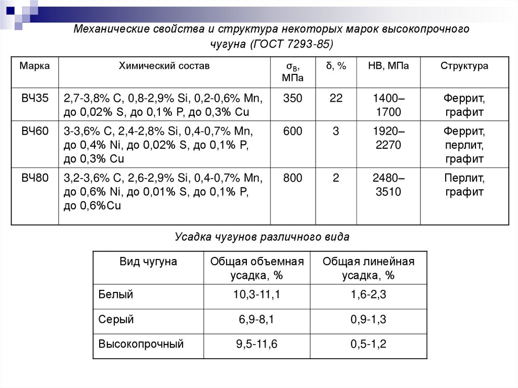 охлаждения (в отличие от серых), меньшую линейную усадку – по сравнению с