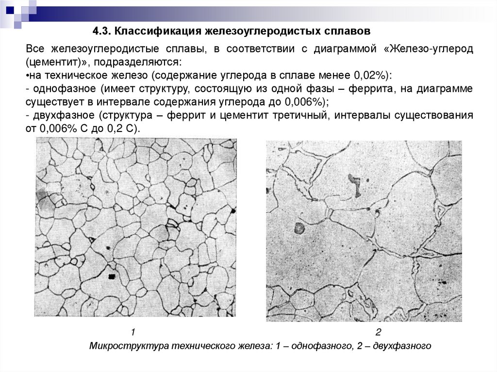Микроструктура технического железа: 1 – однофазного, 2 – двухфазного