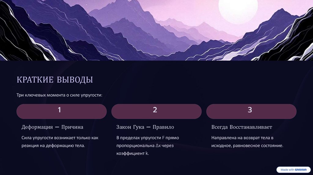 КРАТКИЕ ВЫВОДЫТри ключевых момента о силе упругости: