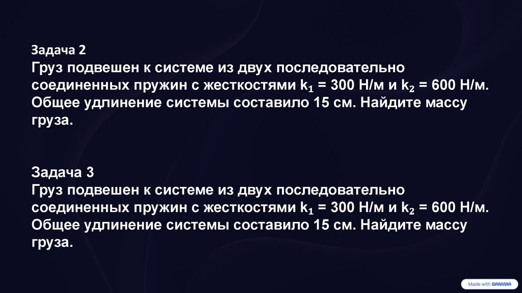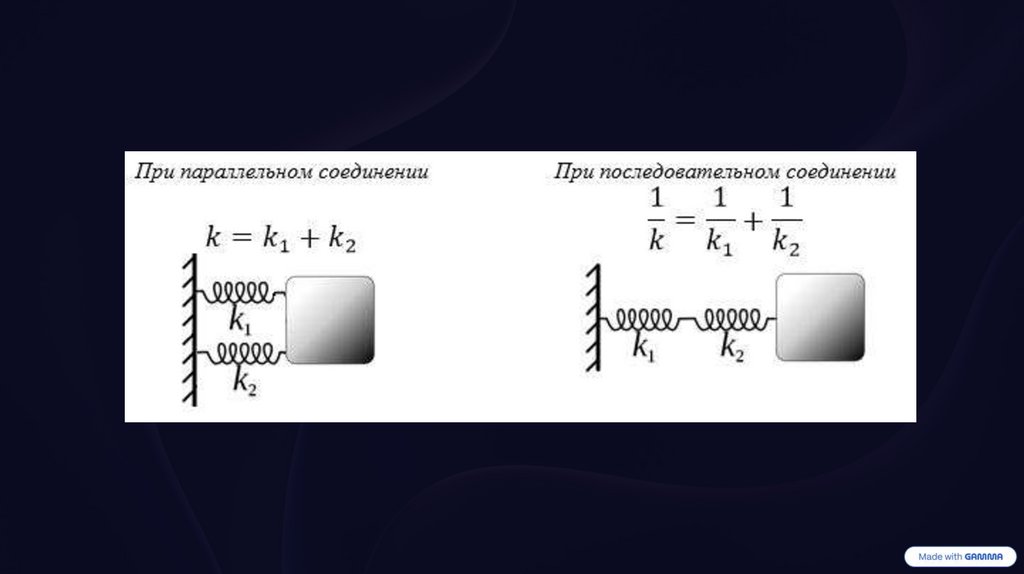 соединенных пружин с жесткостями k₁ = 300 Н/м и k₂ = 600 Н/м.