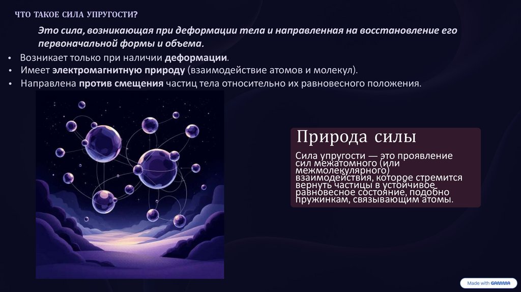 ЧТО ТАКОЕ СИЛА УПРУГОСТИ?Это сила, возникающая при деформации тела и направленная на восстановление его
