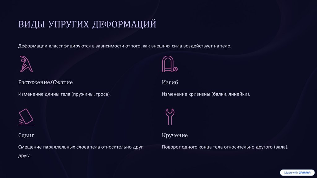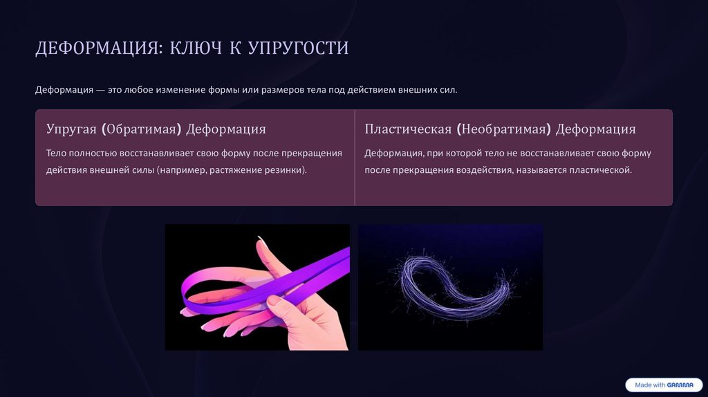 ДЕФОРМАЦИЯ: КЛЮЧ К УПРУГОСТИДеформация — это любое изменение формы или размеров тела под действием внешних сил.