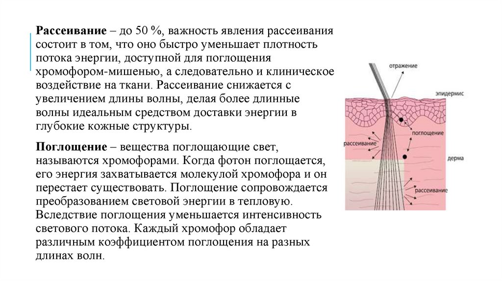 Рассеивание – до 50 %, важность явления рассеиваниясостоит в том, что оно быстро уменьшает плотность