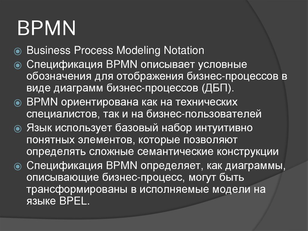 ⦿ Предназначен для описания бизнеспроцессов нижнего уровня