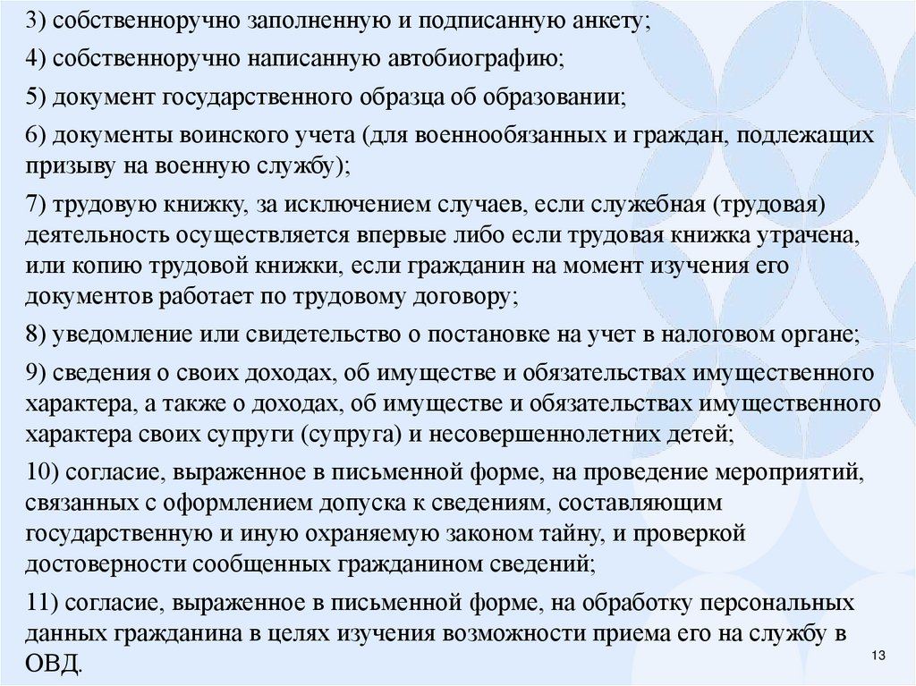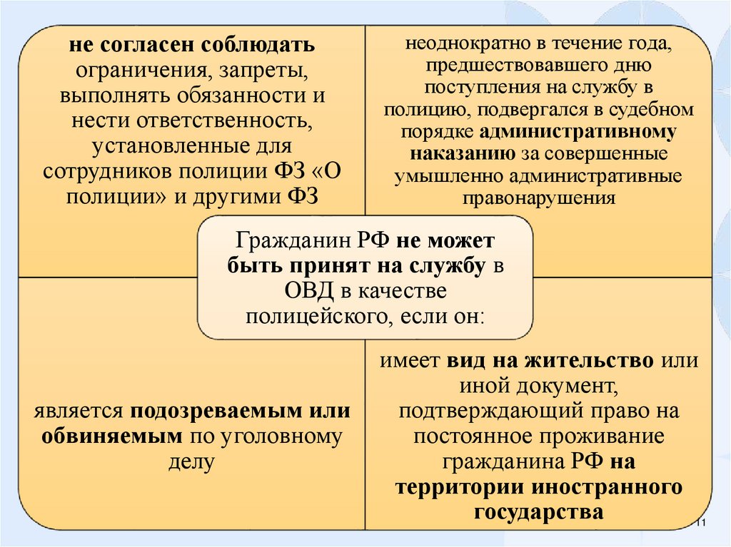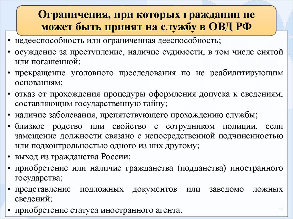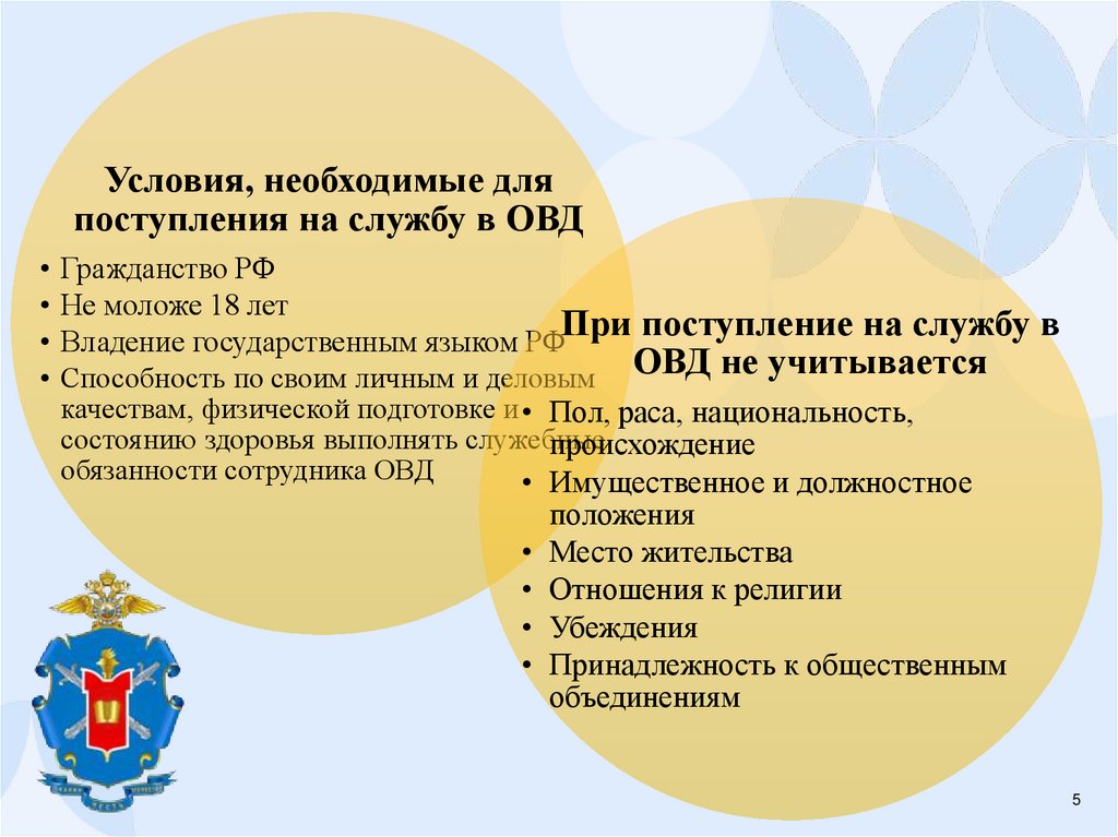 4. Вопрос 1. Условия поступления на службу в ОВД РФ