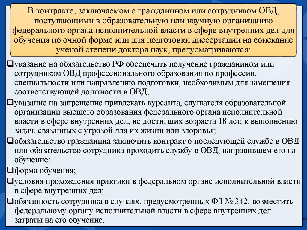 внутренних дел для обучения по очной форме – 25 лет.