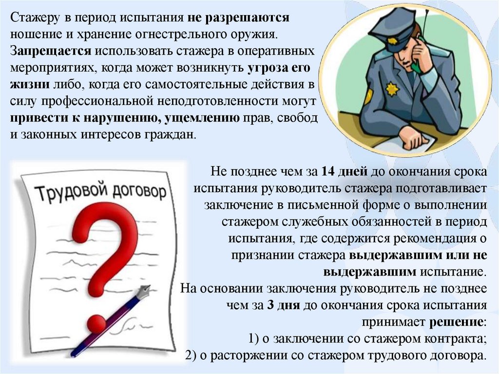 Стажеру в период испытания не разрешаютсяношение и хранение огнестрельного оружия.