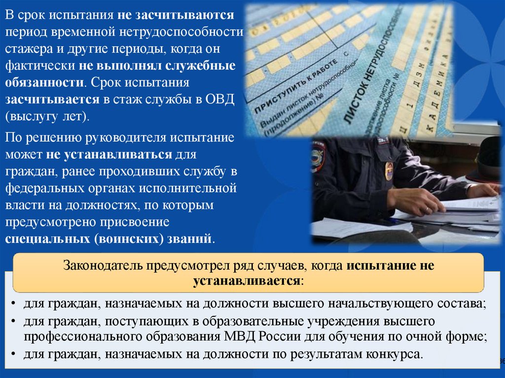 его подготовки и соответствия должности в ОВД устанавливается испытание