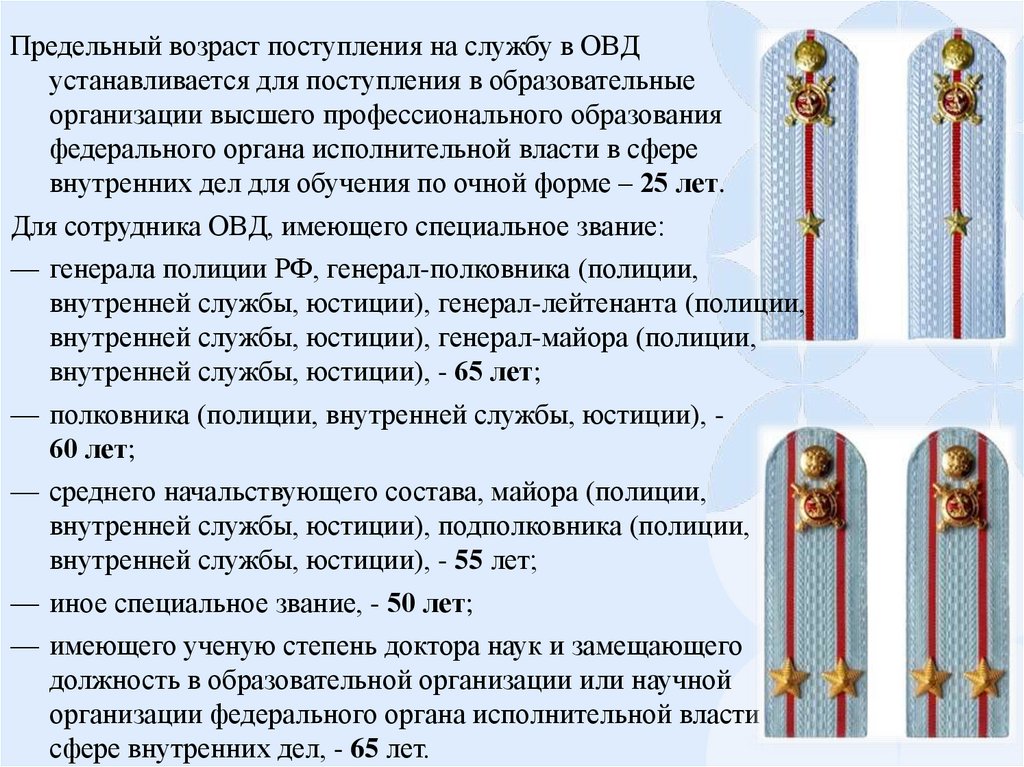 Предельный возраст поступления на службу в ОВДустанавливается для поступления в образовательные