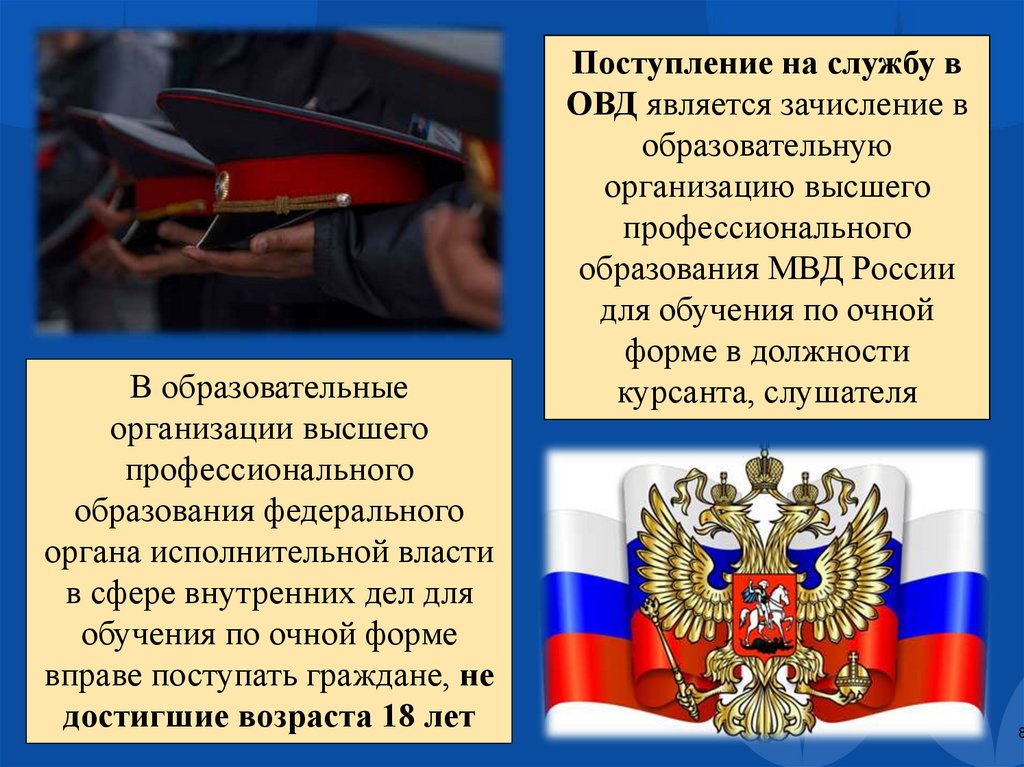 Особенности поступления на службу
