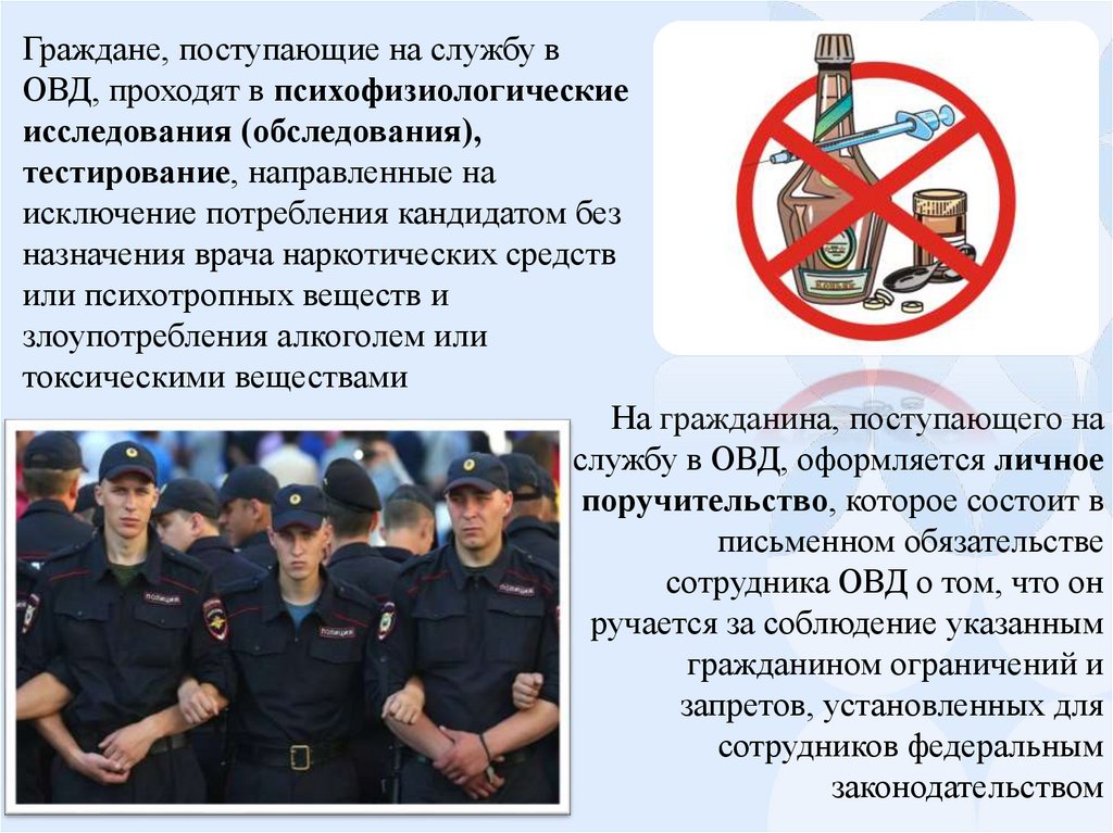 Для гражданина, поступающего на службу в ОВД, в целях проверки уровня