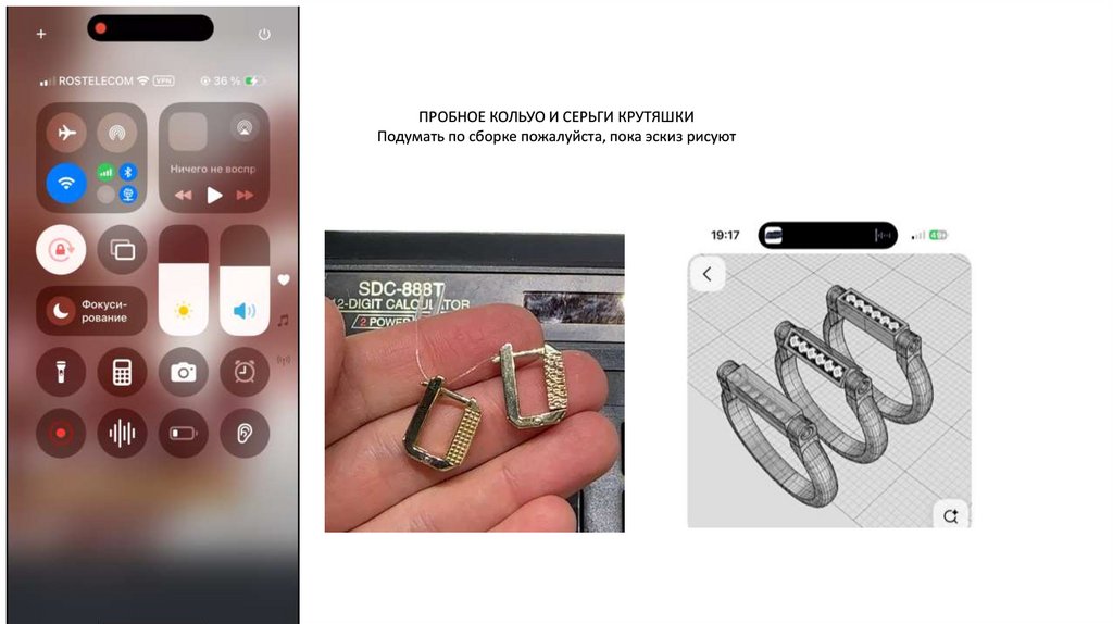 ПРОБНОЕ КОЛЬУО И СЕРЬГИ КРУТЯШКИПодумать по сборке пожалуйста, пока эскиз рисуют