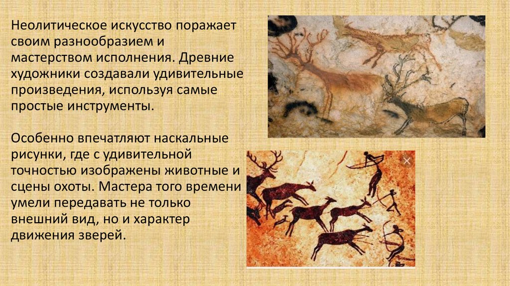 2. Неолитическое искусство — это искусство, созданное в новокаменном веке или эпохе неолита, которая длилась примерно с 8000 по