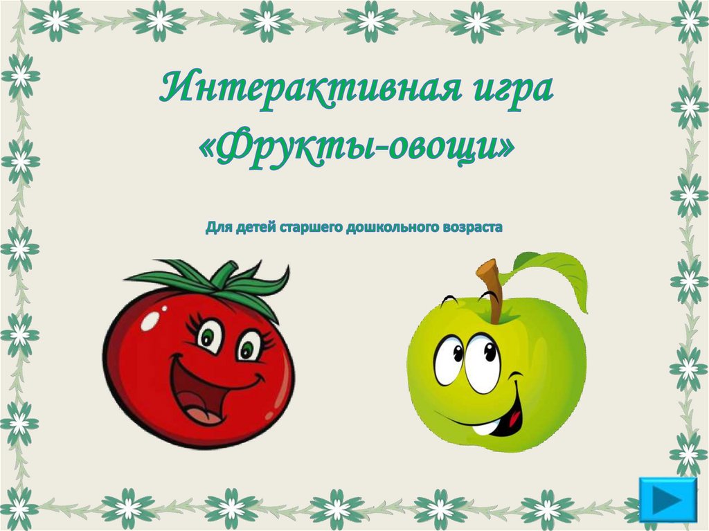 1. Интерактивная игра «Фрукты-овощи» Для детей старшего дошкольного возраста