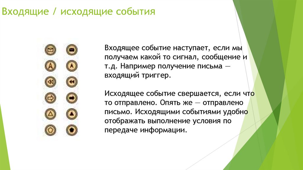 Входящие / исходящие событияВходящее событие наступает, если мы