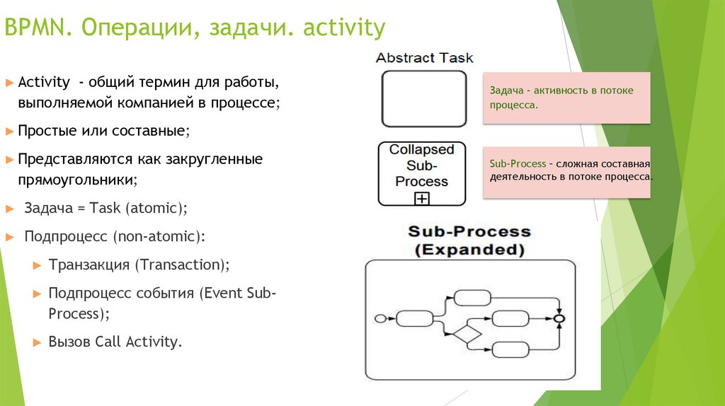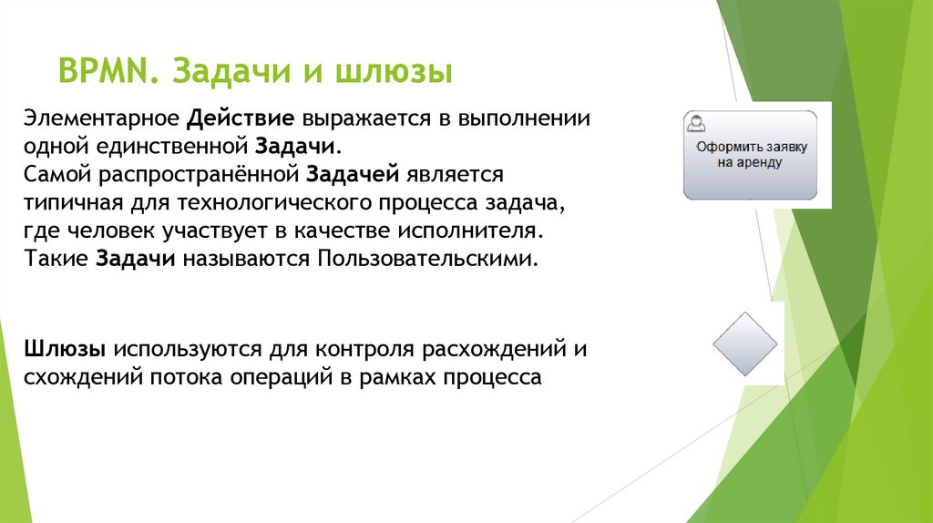 BPMN. Задачи и шлюзыЭлементарное Действие выражается в выполнении
