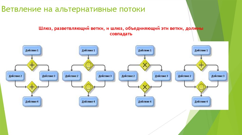 Ветвление на альтернативные потокиШлюз, разветвляющий ветки, и шлюз, объединяющий эти ветки, должны
