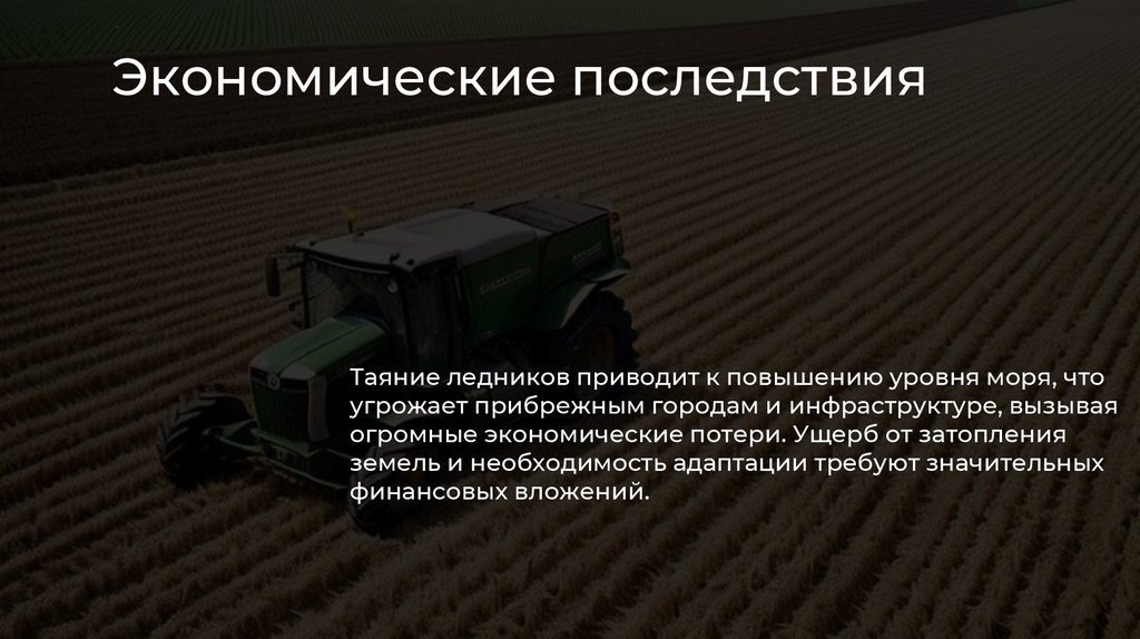 Экономические последствияТаяние ледников приводит к повышению уровня моря, что